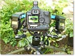 camera, dual flashes, ball head, macro arms and dual marco rail. |